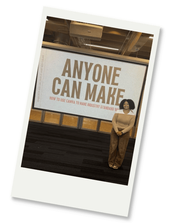 Through Skillshares and workshops, I teach people how to use tools like Canva to create industry-standard work. I love demystifying creativity — showing that design isn’t reserved for designers.