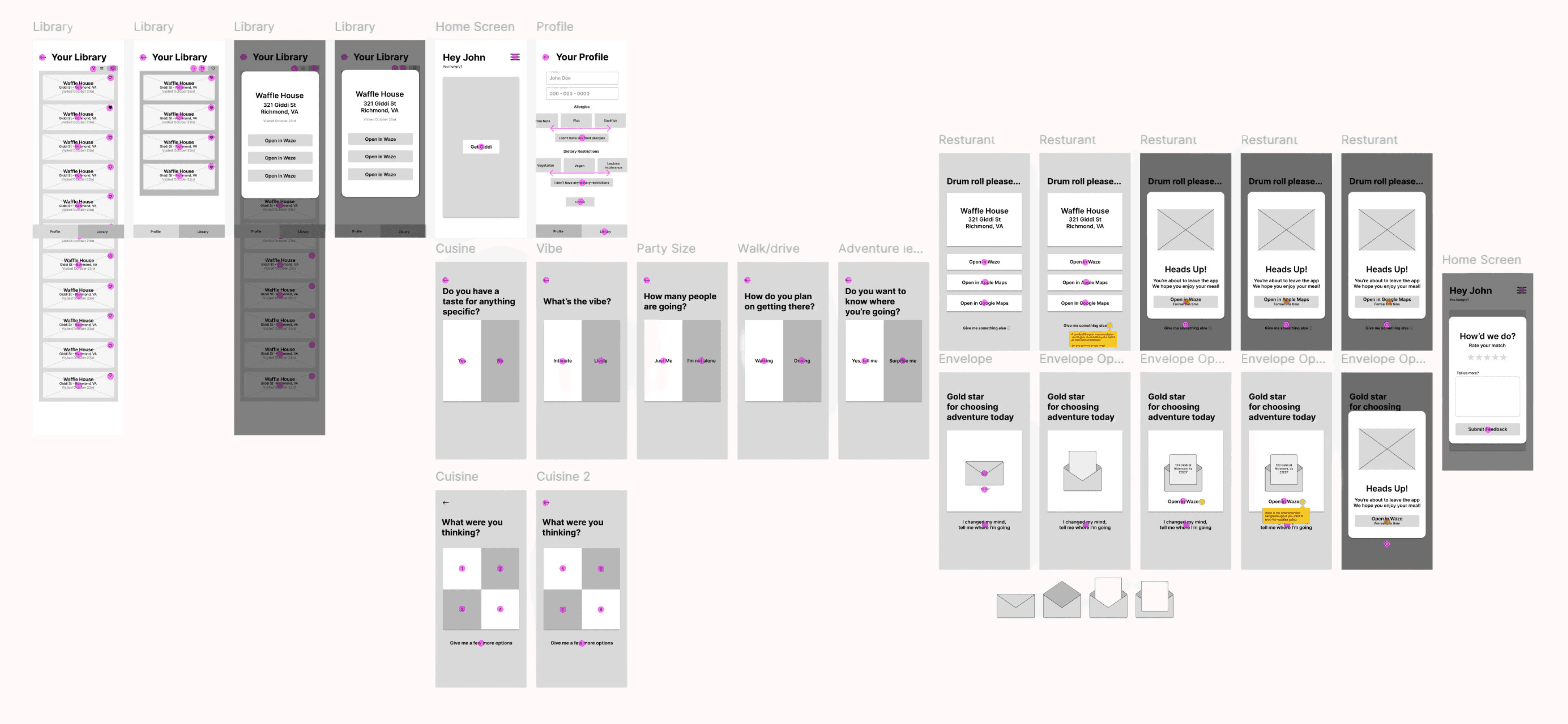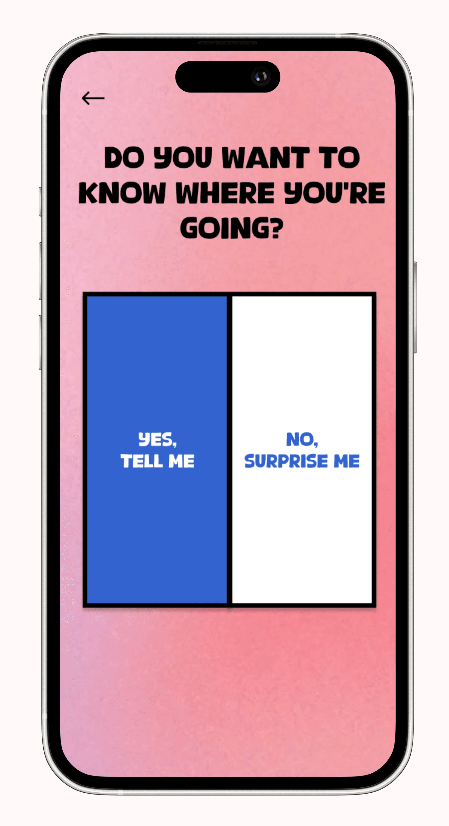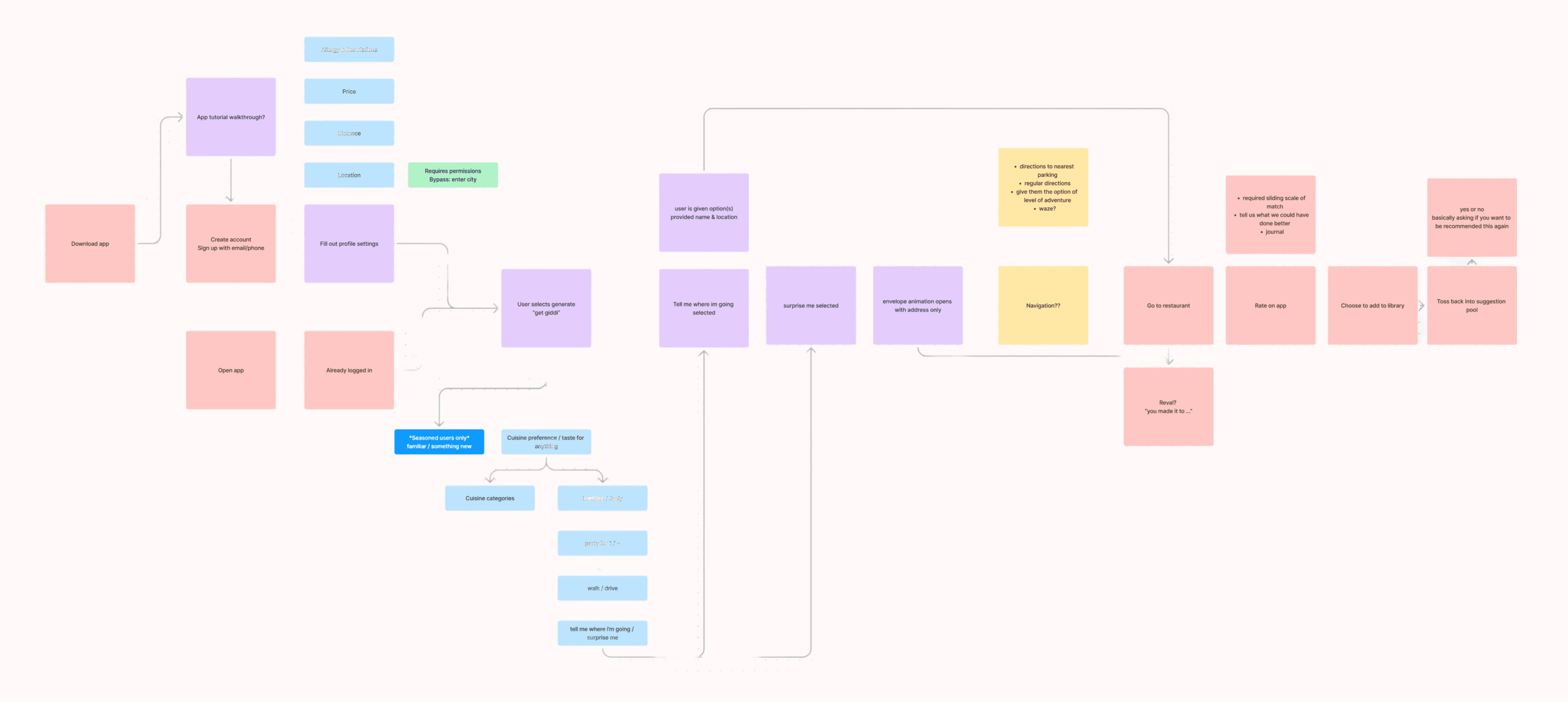 The initial user flow was designed to map out the steps a user would take while interacting with the app. This process helped us clarify navigation and pinpoint how to effectively integrate the adventure options, ensuring a smooth and engaging experience.
