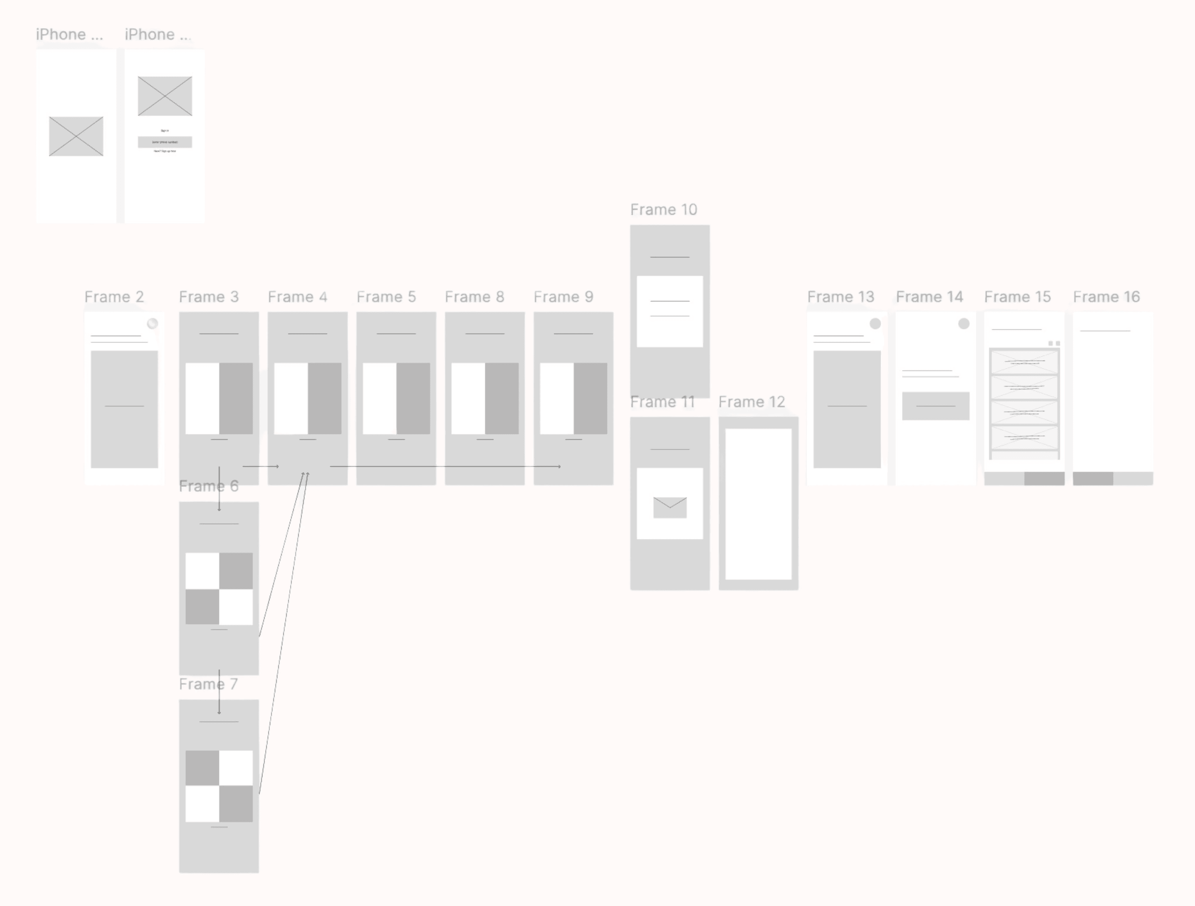The user flow served as the foundation for creating wireframes, allowing us to visualize the app’s structure and how users would interact with it. The wireframes were essential in mapping out each step, helping the team understand the most efficient and intuitive way to engage with our users. This process ensured we were aligned on how to create a seamless and user-friendly experience from start to finish.