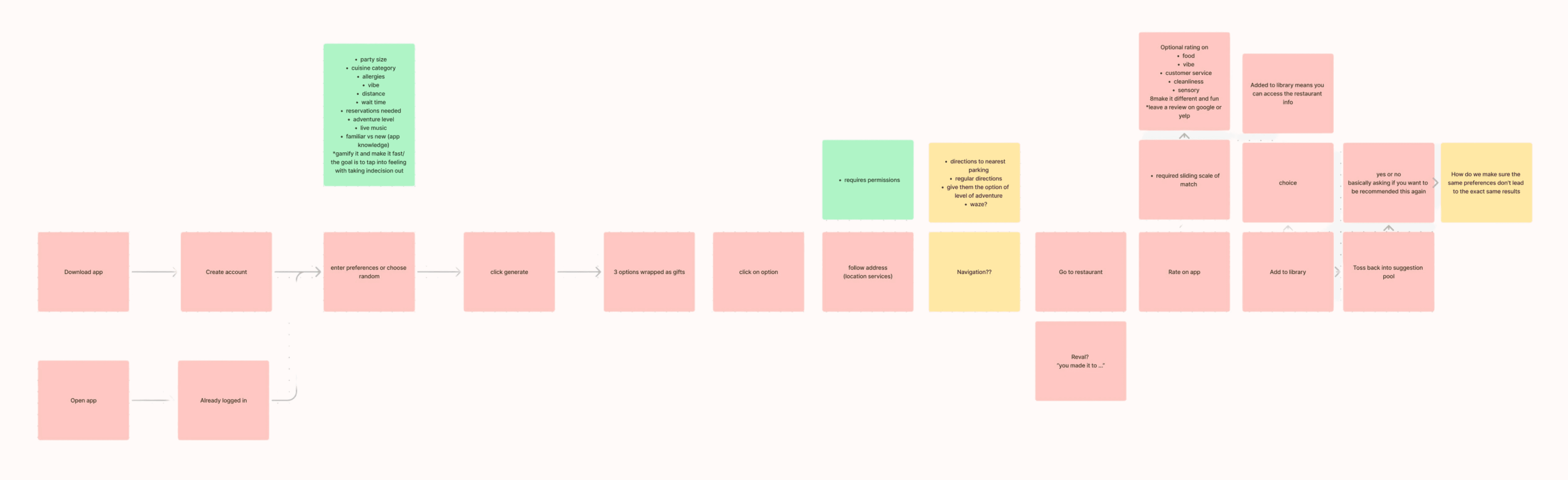 The problem we’re tackling is the overwhelming stress and indecision people face when choosing a restaurant, which often leads to frustration, anxiety, and strained relationships. Users feel stuck in an endless cycle of options, unsure of where to go or what to eat, which makes something as simple as dining out feel like a chore. We are designing for individuals like Kyle, busy professionals who value simplicity and want a smooth, stress-free experience when it comes to dining decisions. These users crave a way to quickly and confidently find a restaurant that suits both their preferences and cravings, without the added pressure or confusion.