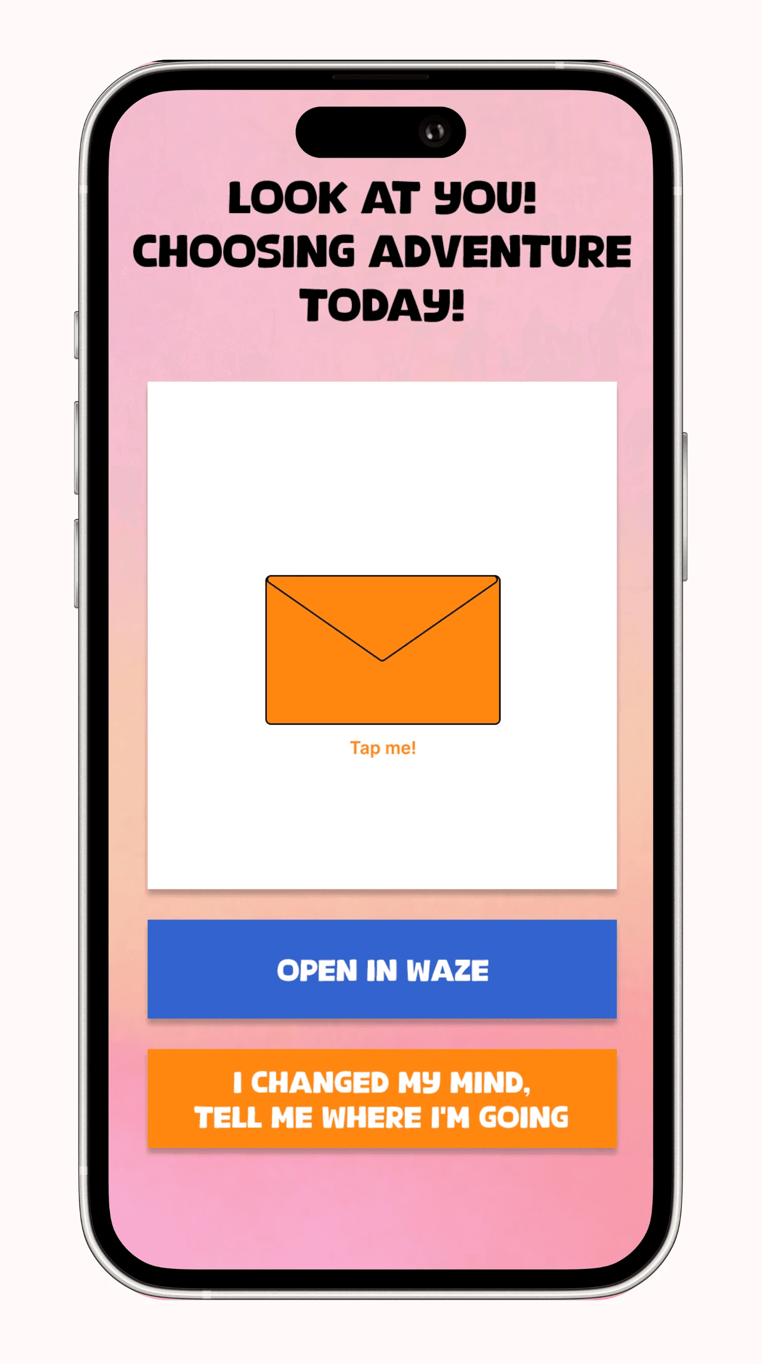 We know you probably don't know where you're going so feel free to choose your favorite navigation app to get you the rest of the way there. We offer Apple Maps, Google Maps, and Waze. Waze is what's recommended if you're taking the surprise route because they won't spoil the surprise for you by telling you "what's at this address" - kinda sketchy if you ask us, but it works for us!