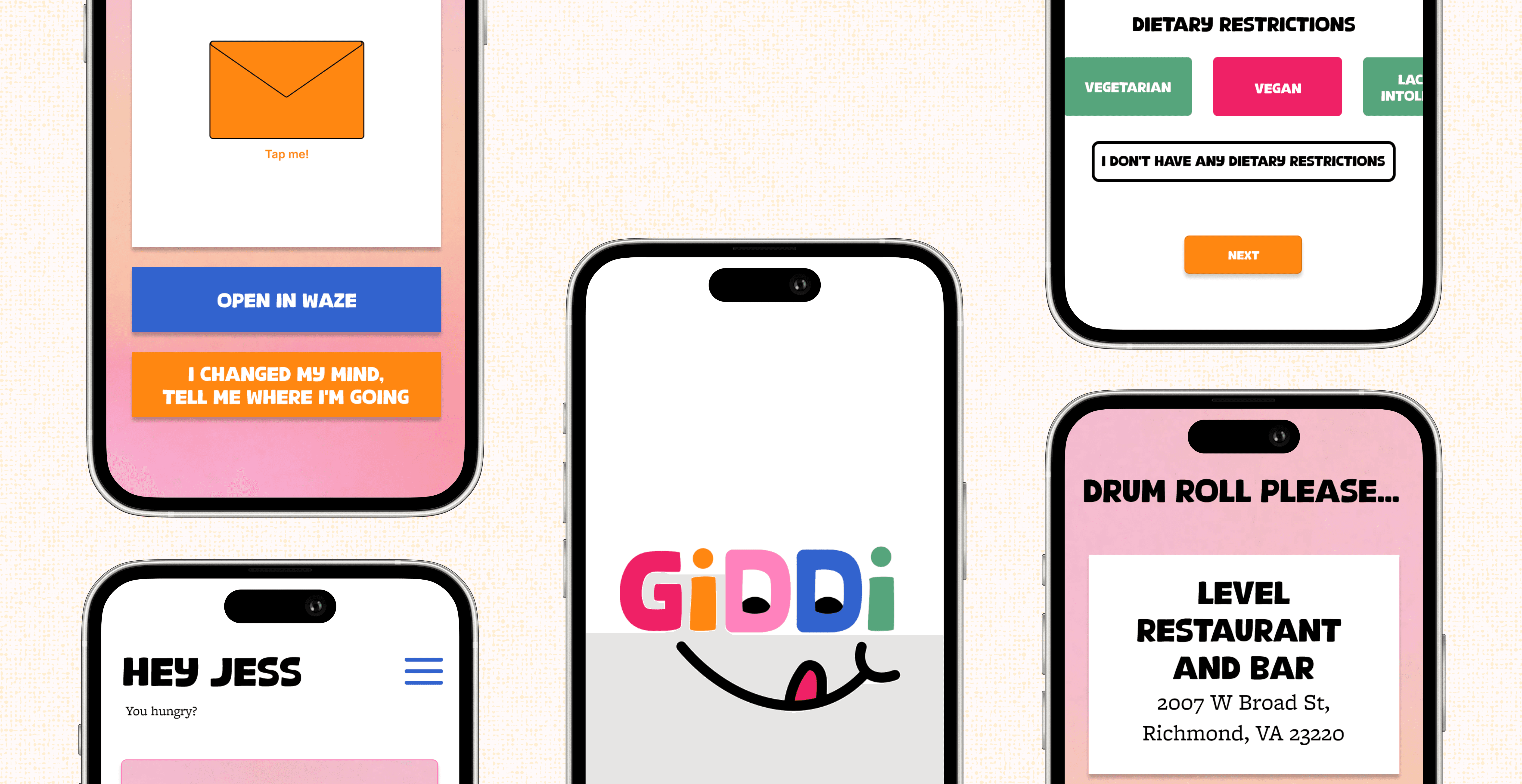 Expansive preference options - these options are very personalized, because Giddi wants to really get to know you and what’s best for you. More than just cuisine preference or allergies, the app takes into account your party size, mode of transportation, preferred ambience, and more.