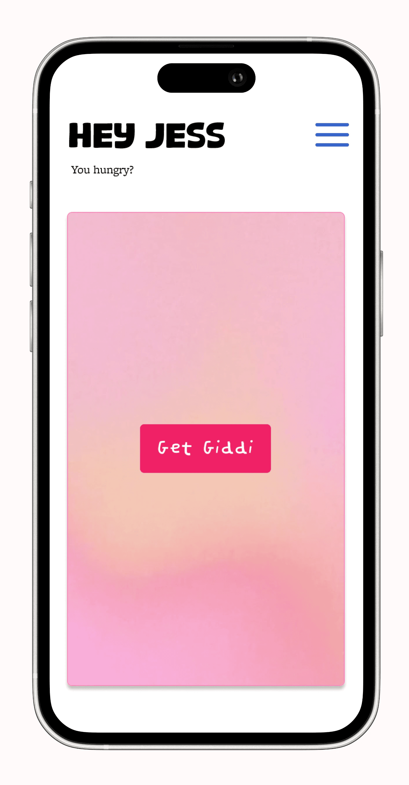 Straightforward design - we know what you're here for so why clutter the homepage with a bunch of overwhelming options? Let's get straight to the point, just select "Get Giddi" to get paired with your next meal.